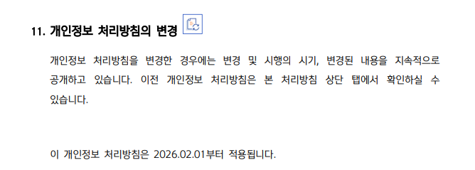 개인정보처리방침 버전 선택